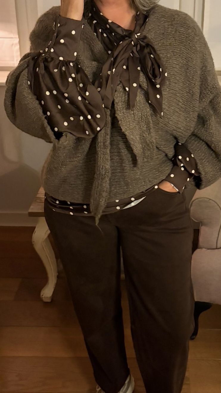 Leuk te dragen met onze taupe trui erover of een blazer, jasje