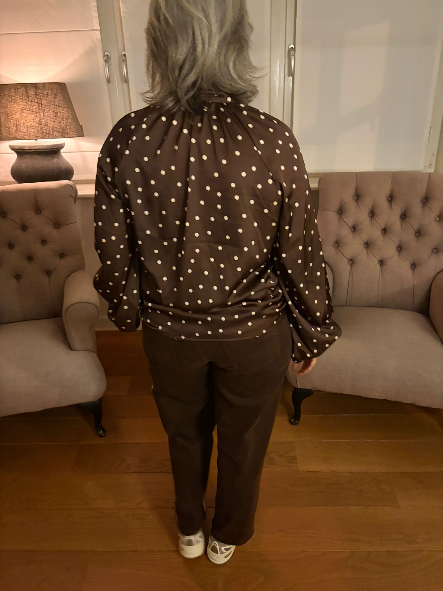 Kleur: Donker Bruin/ Witte Stip