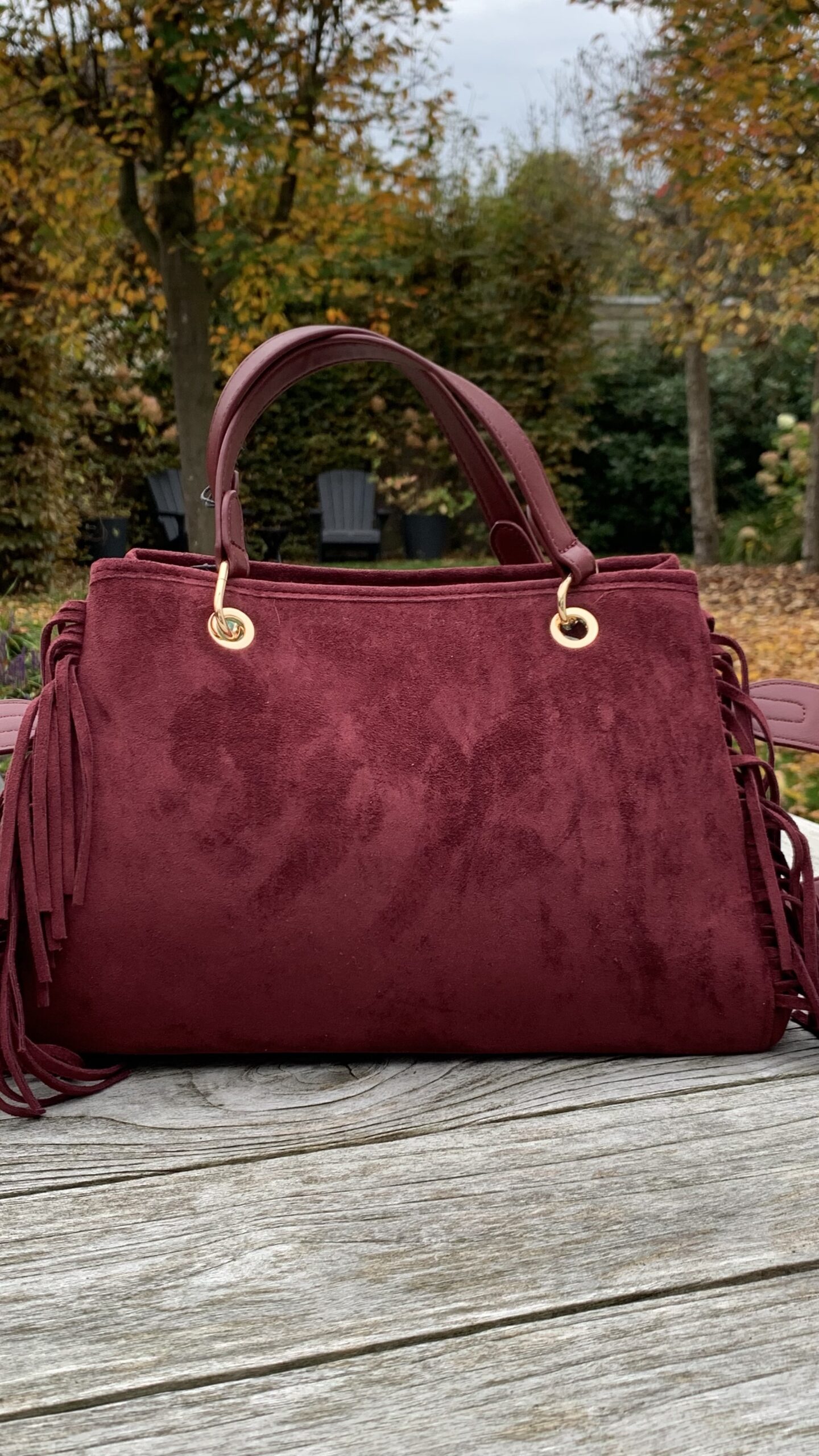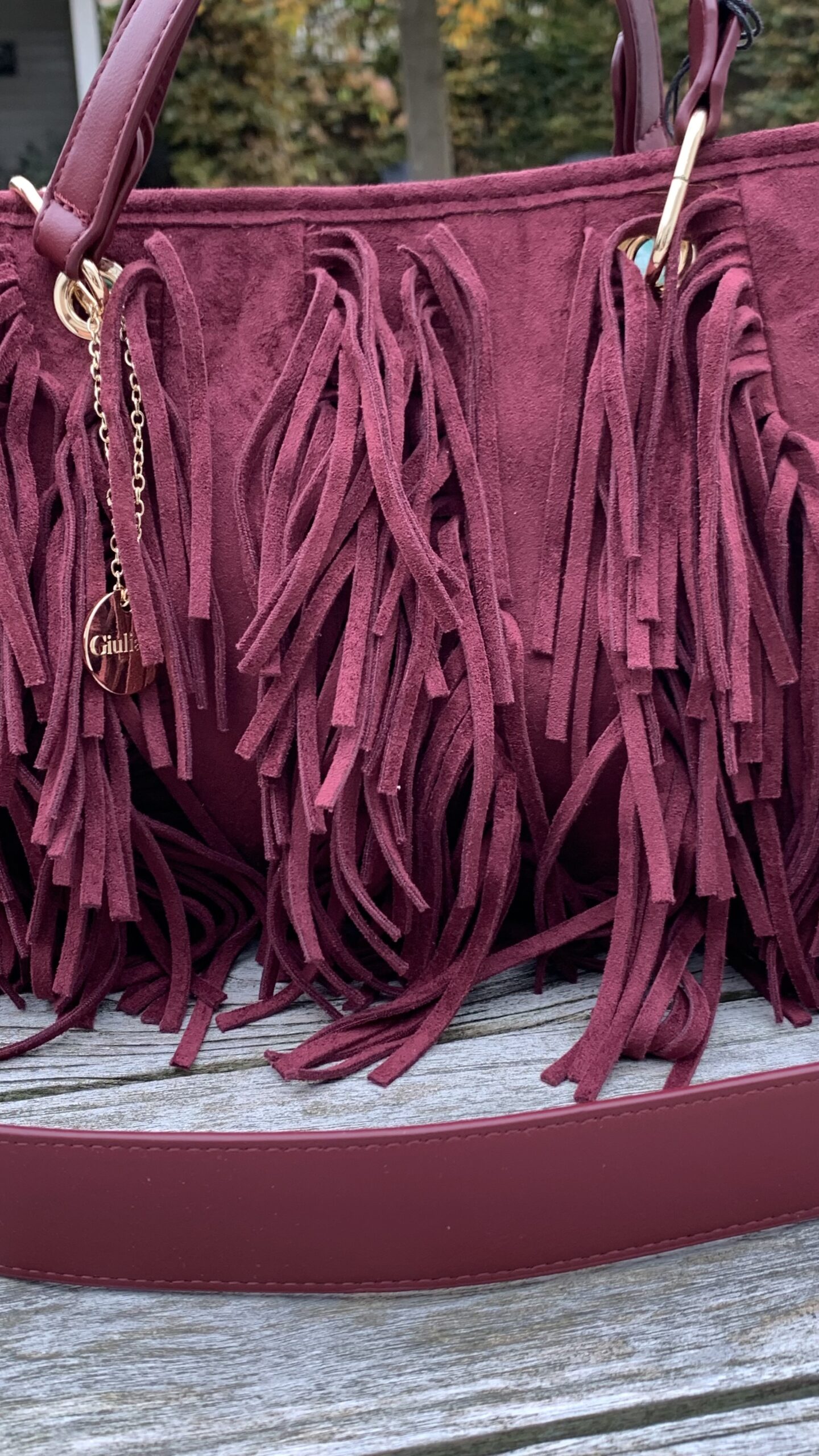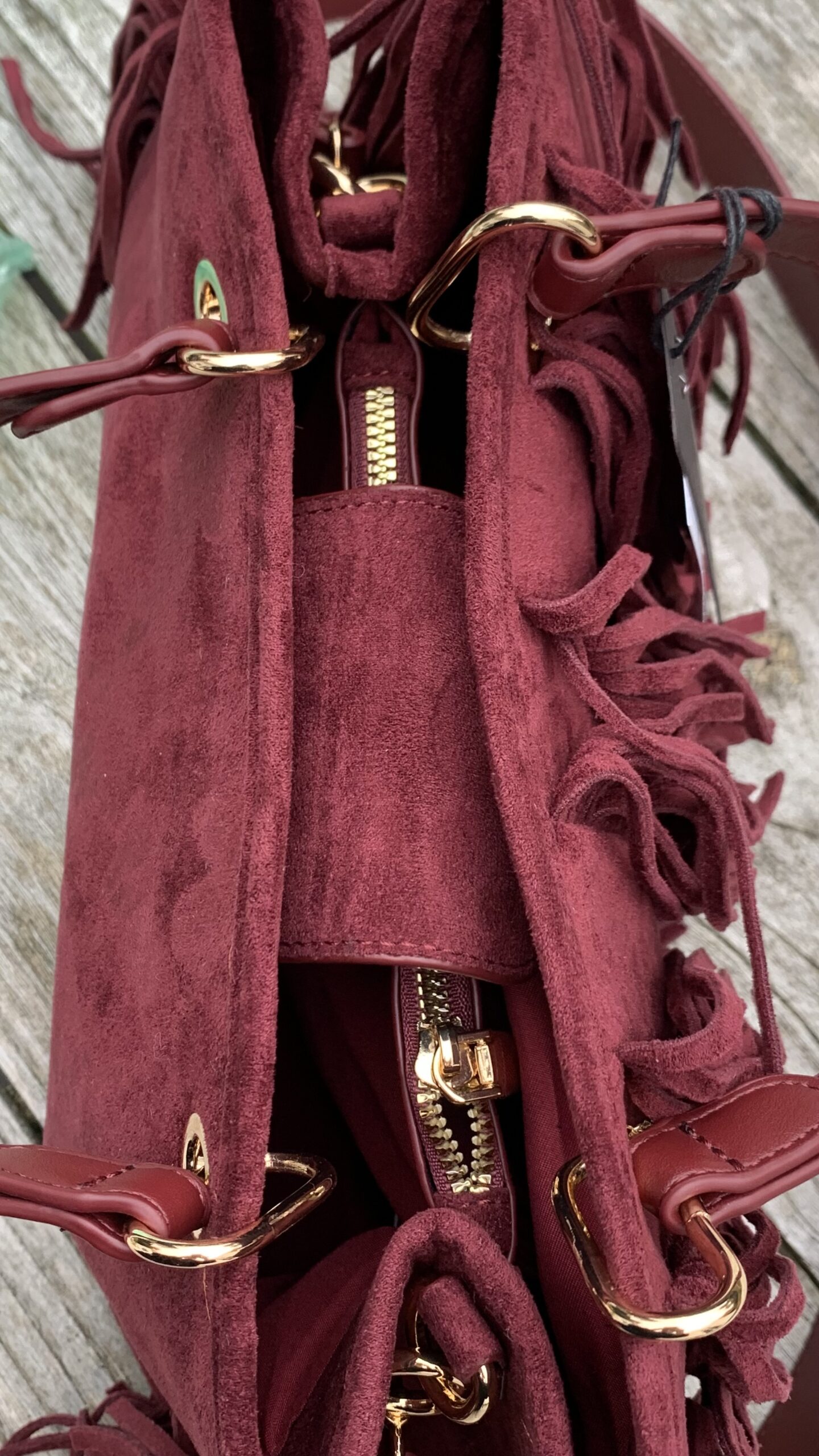 Voorkant van de tas heeft franjes, Achterkant heeft geen franjes