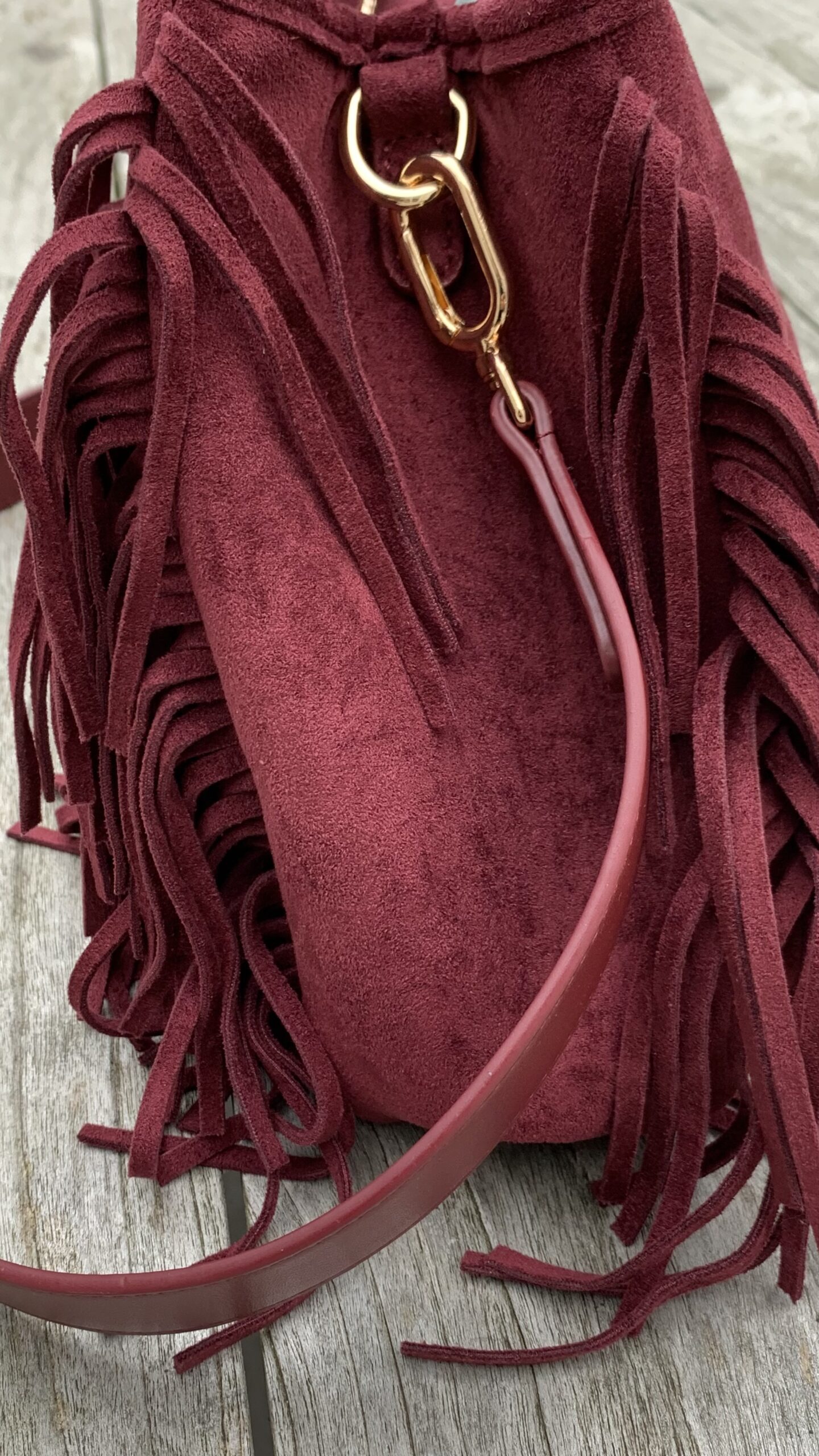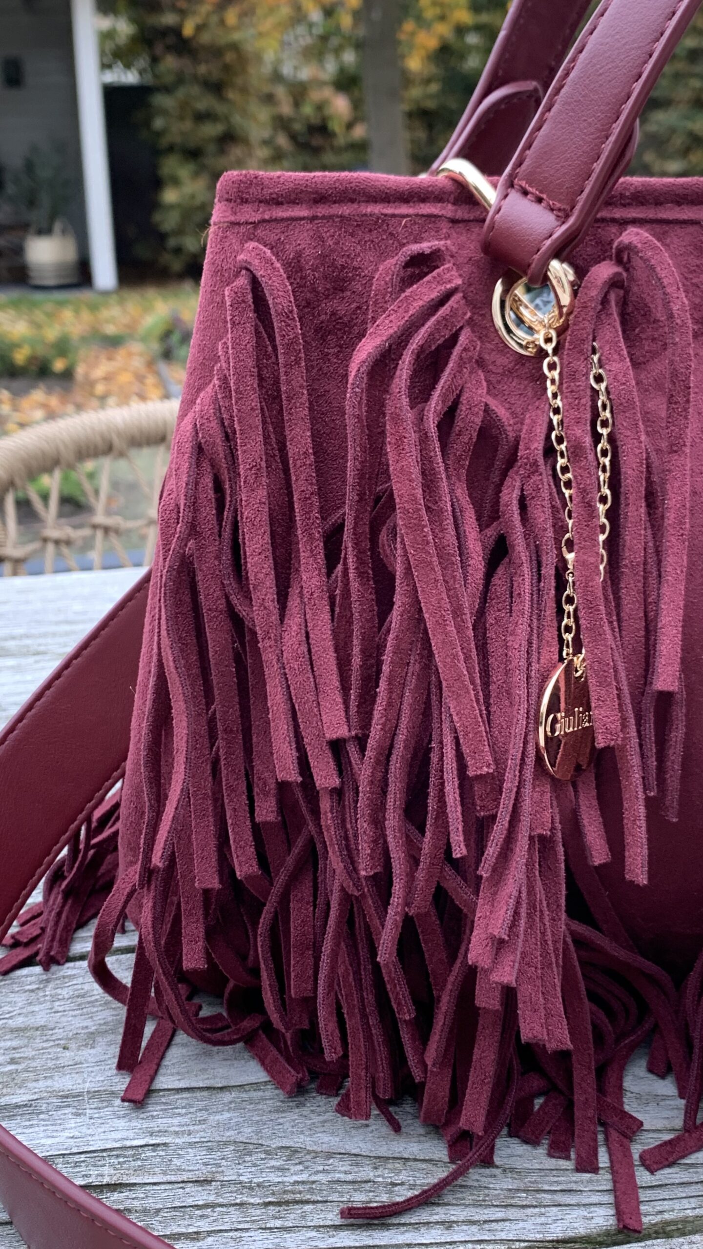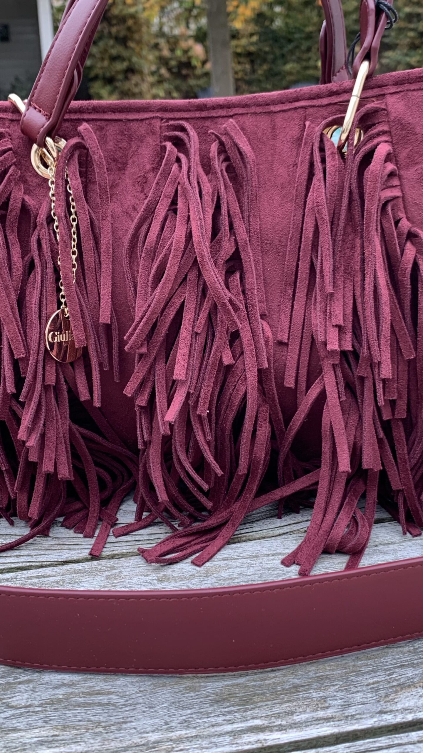 Voorkant van de tas heeft franjes, Achterkant heeft geen franjes