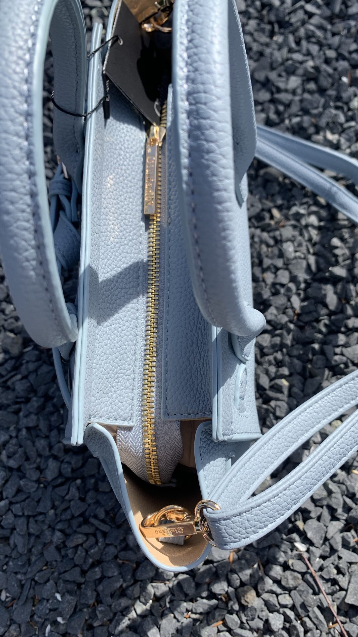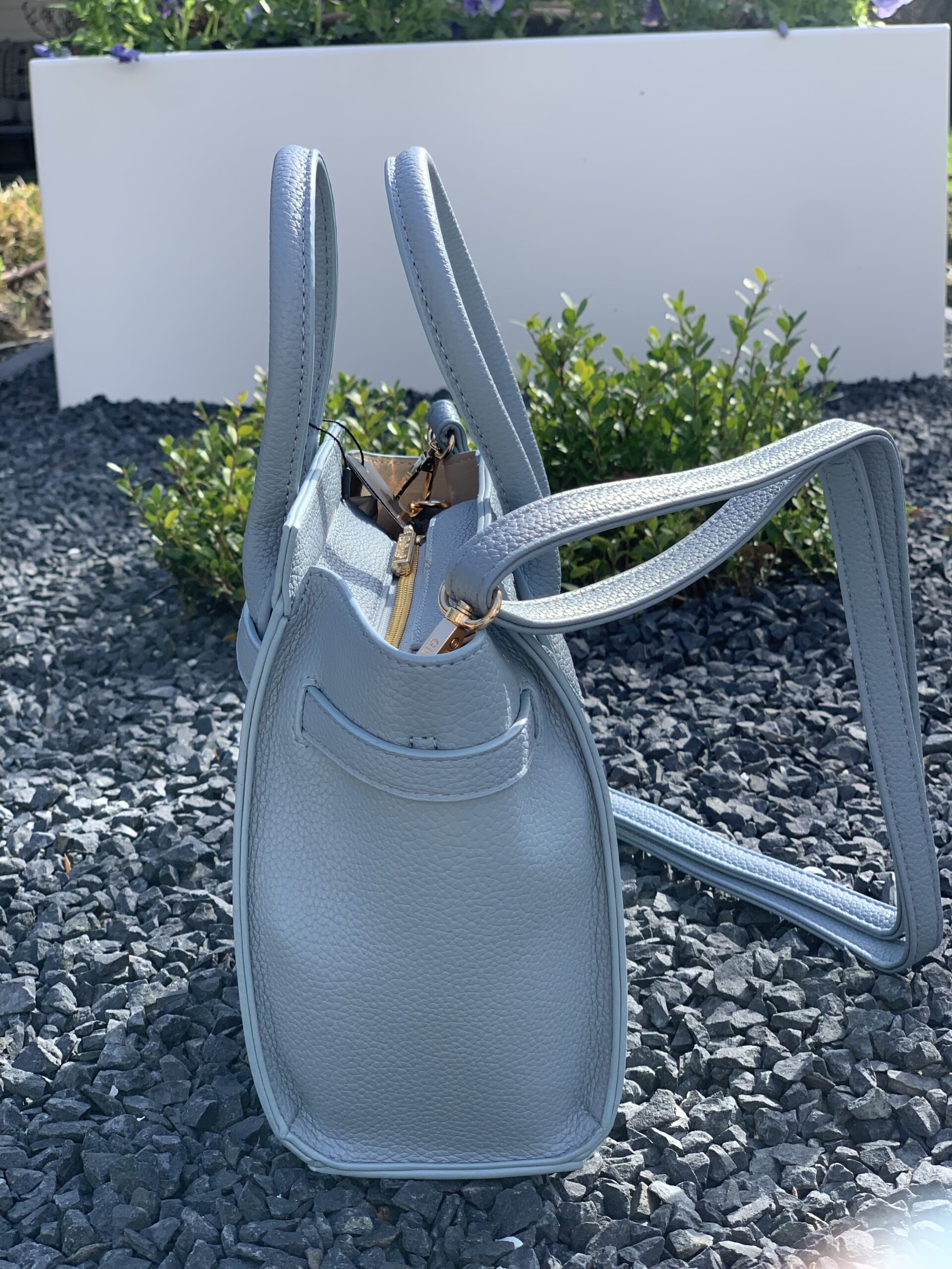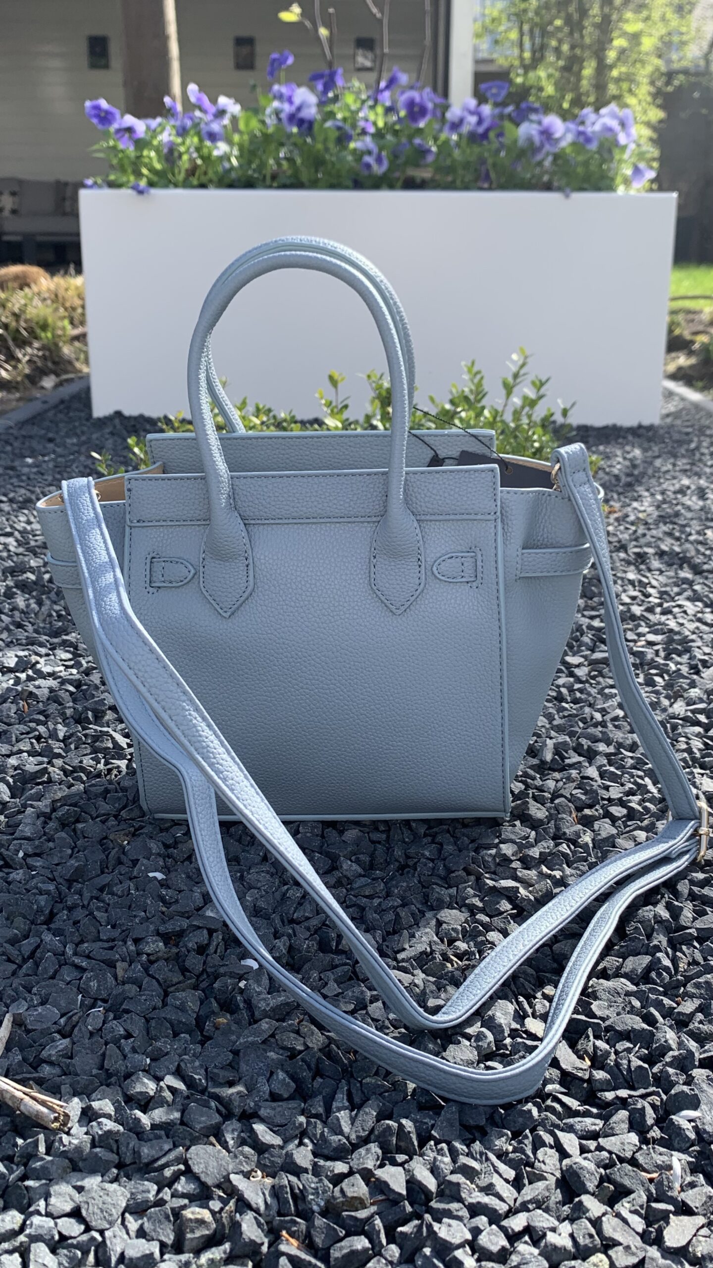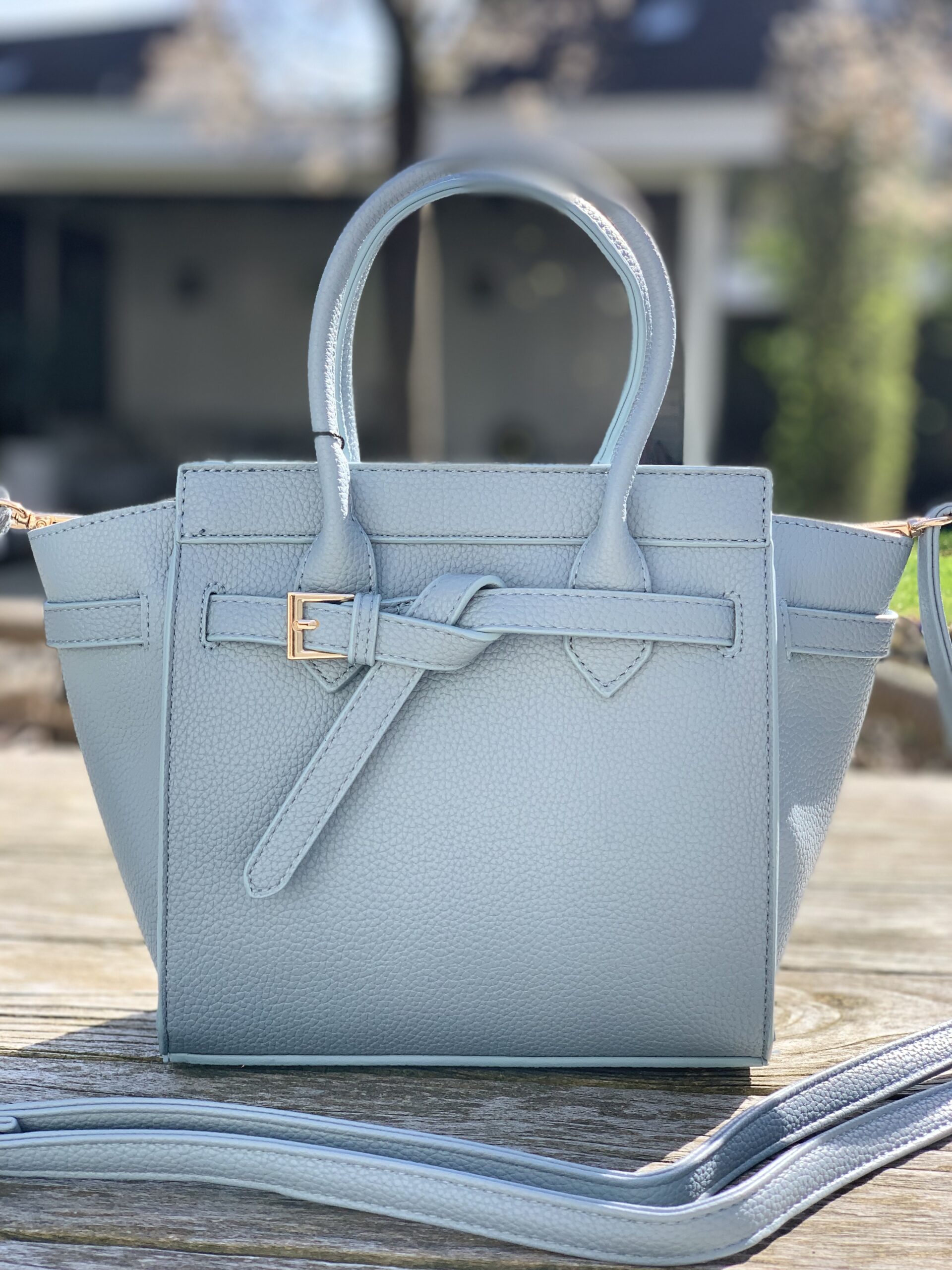 Beschrijving: Dit tasje heeft één groot vak, de tas sluit met een rits, met een draagriem van hetzelfde materiaal, de tas heeft voor een sier riempje