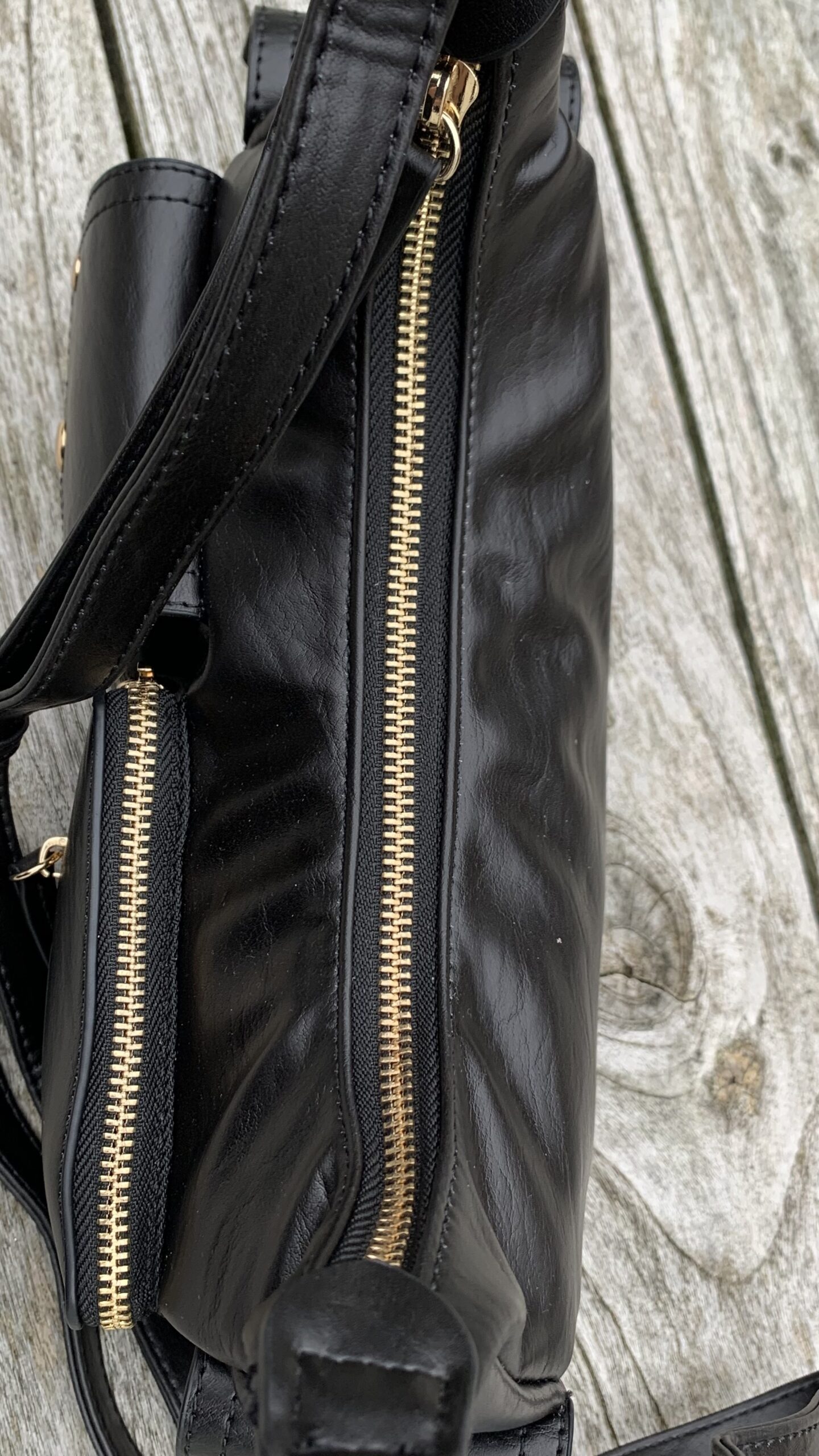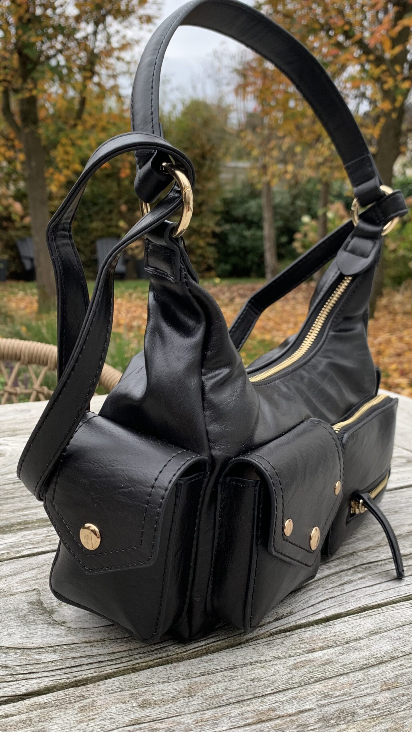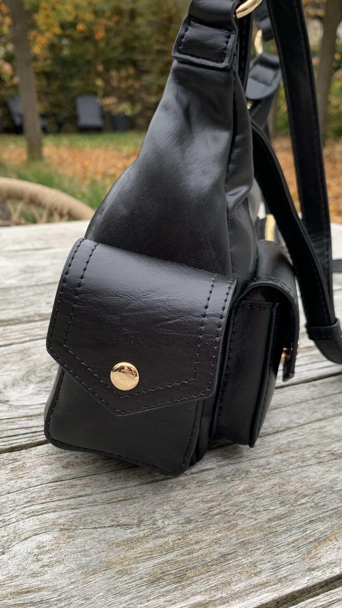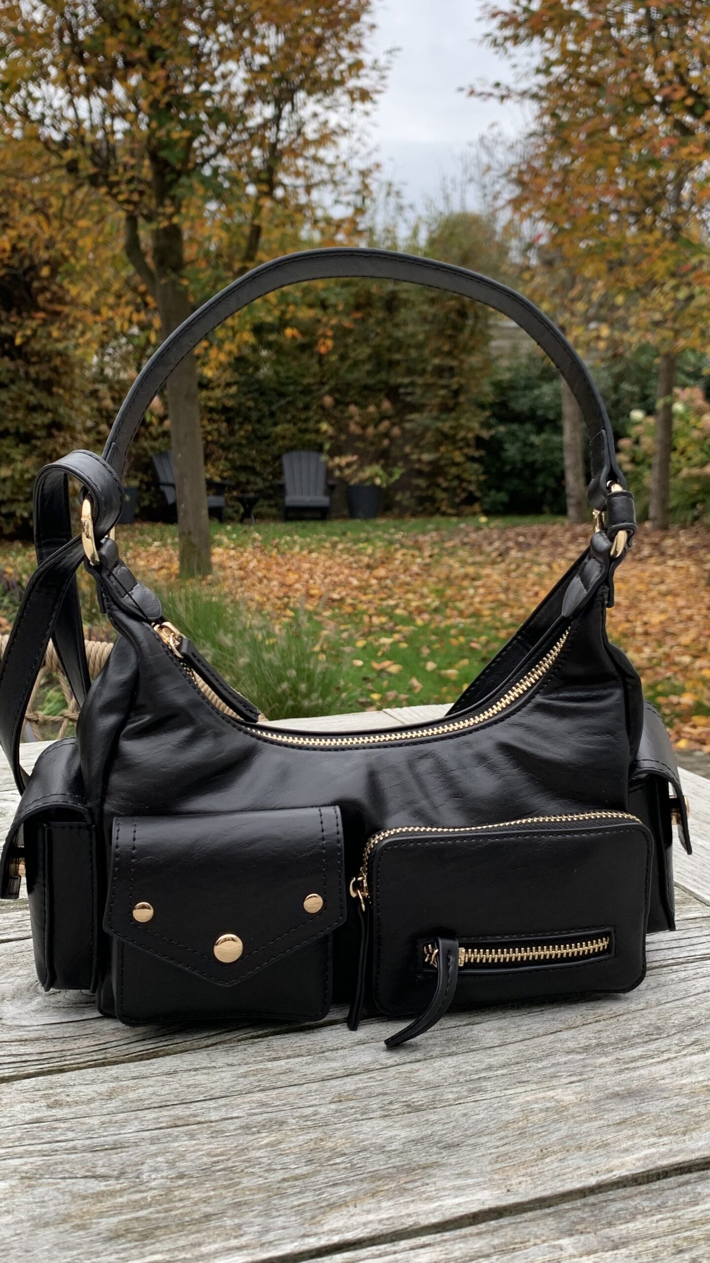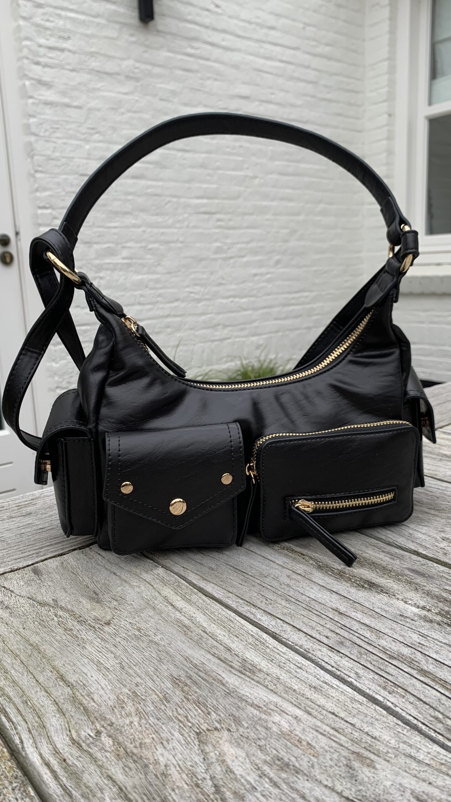 Aan de buiten zijde heeft de tas 4 kleine vakjes, 2 zijvakjes en aan iedere zijkant 1