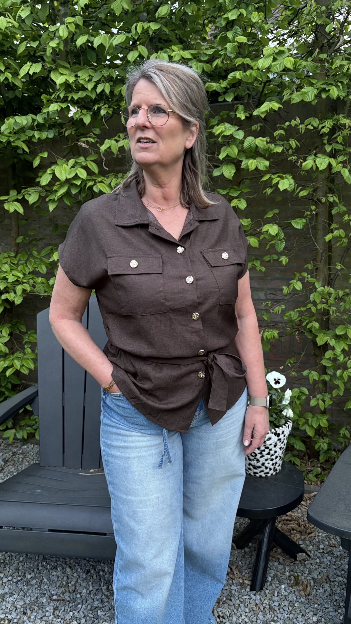 Blouse Donker Bruin Korte Mouw