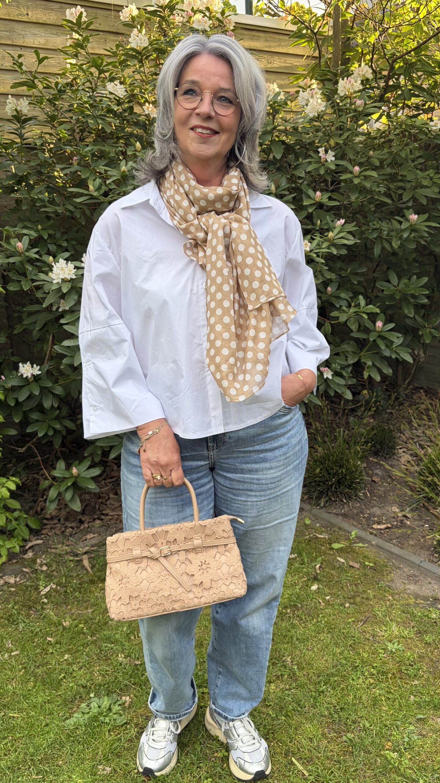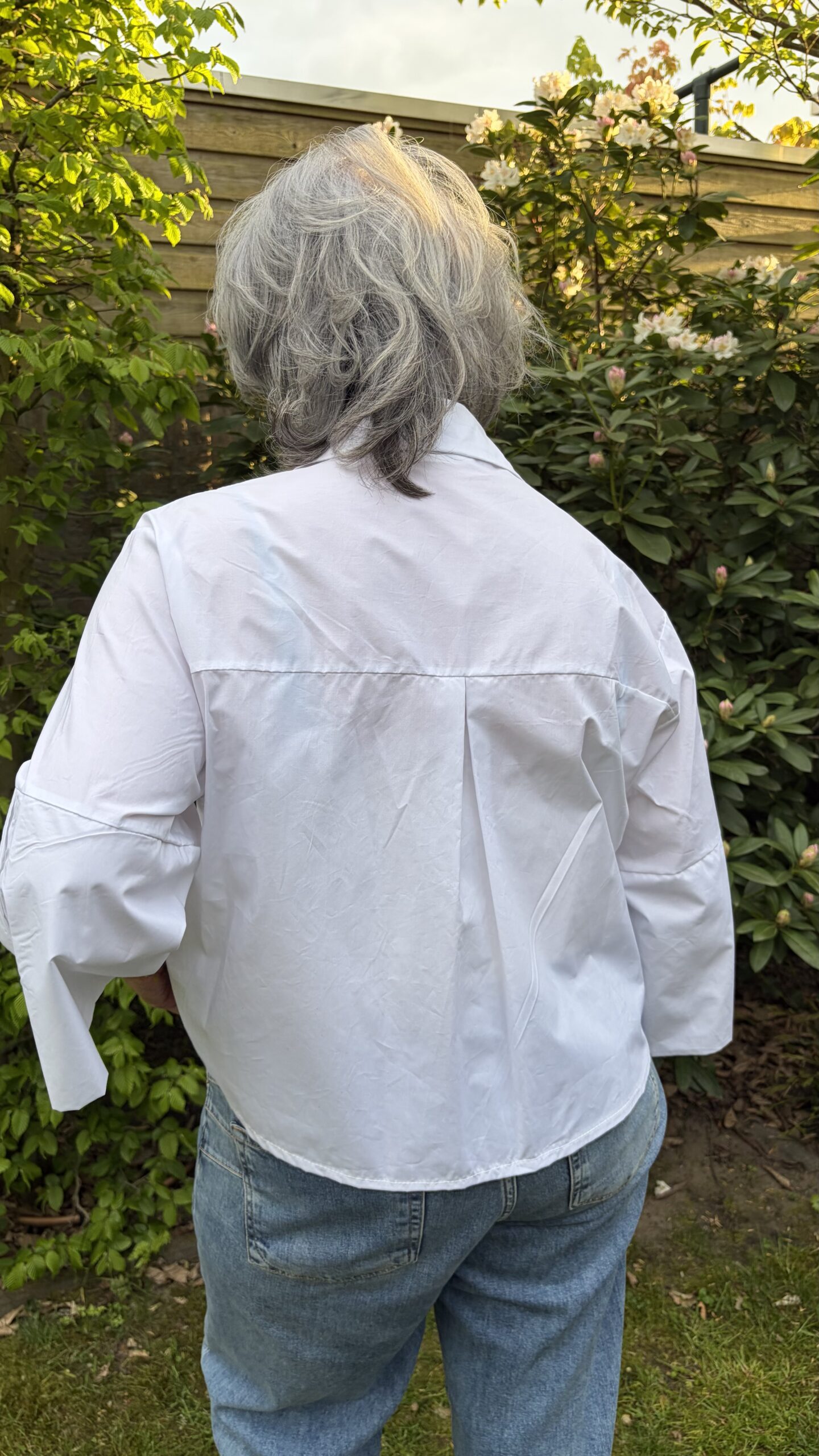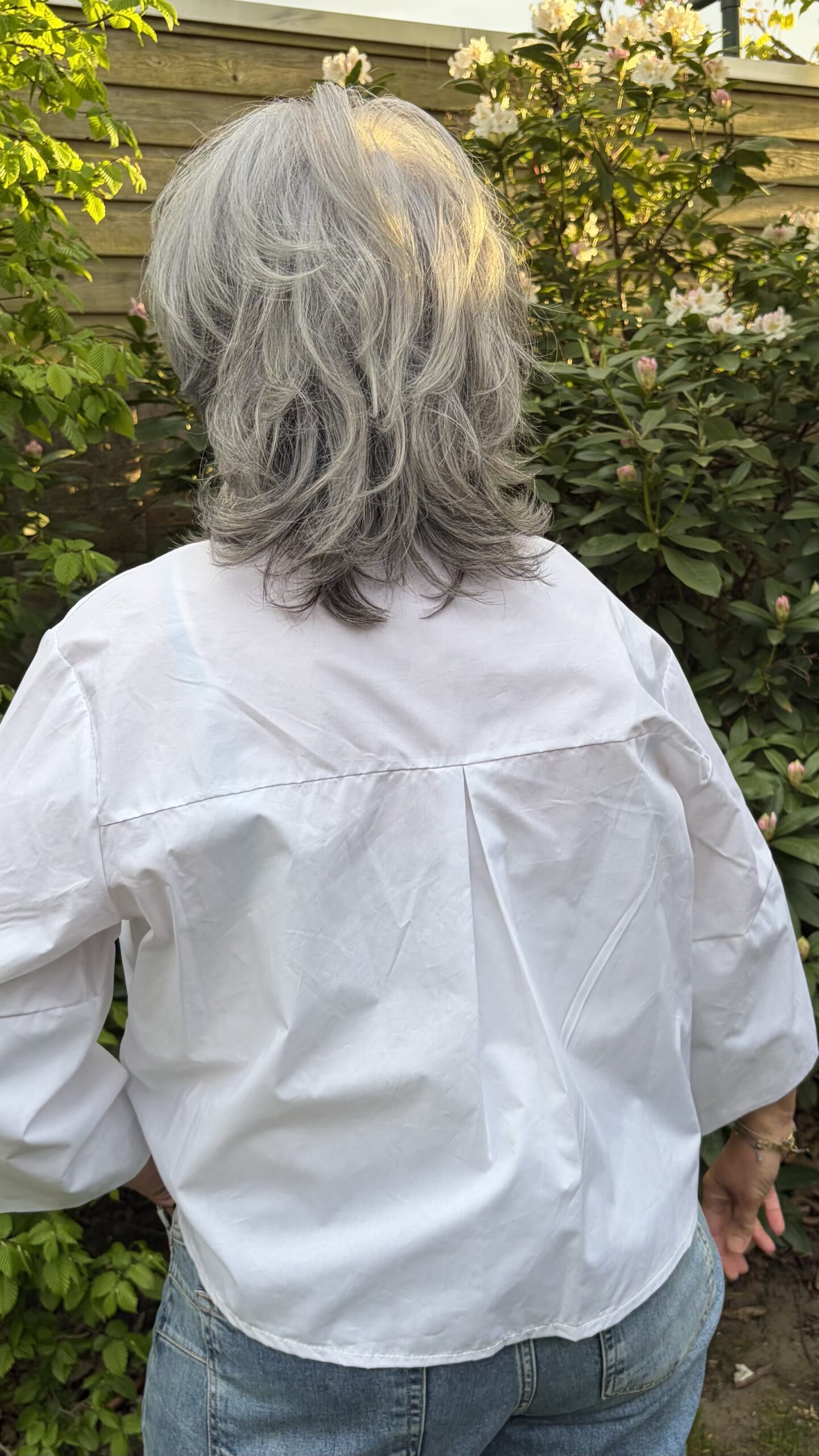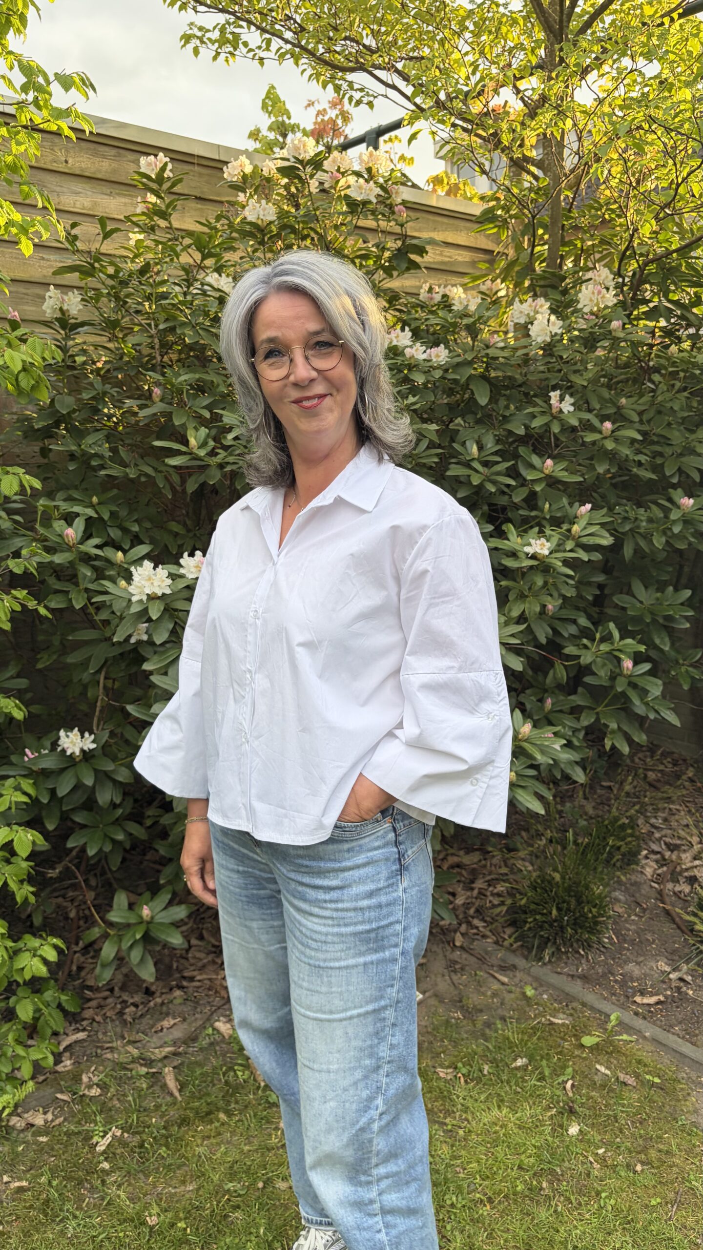 Blouse Uni Wit met Wijd Uitlopende Mouw
